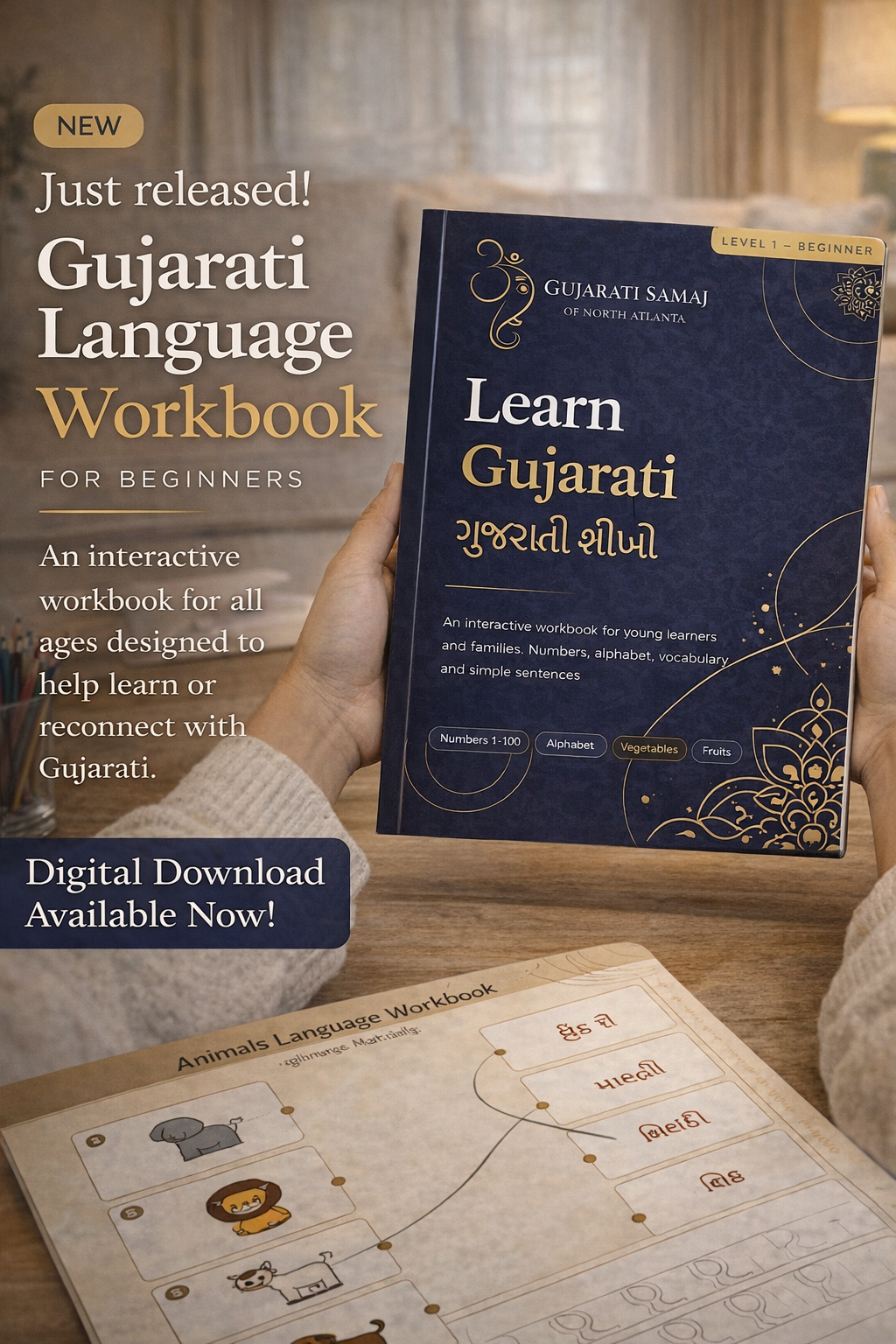 Start your Gujarati language journey — or reconnect with your roots — with our thoughtfully designed Beginner Gujarati Language Workbook.